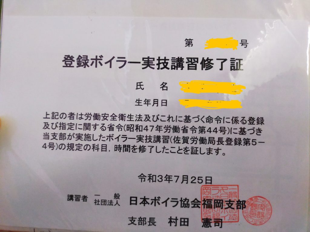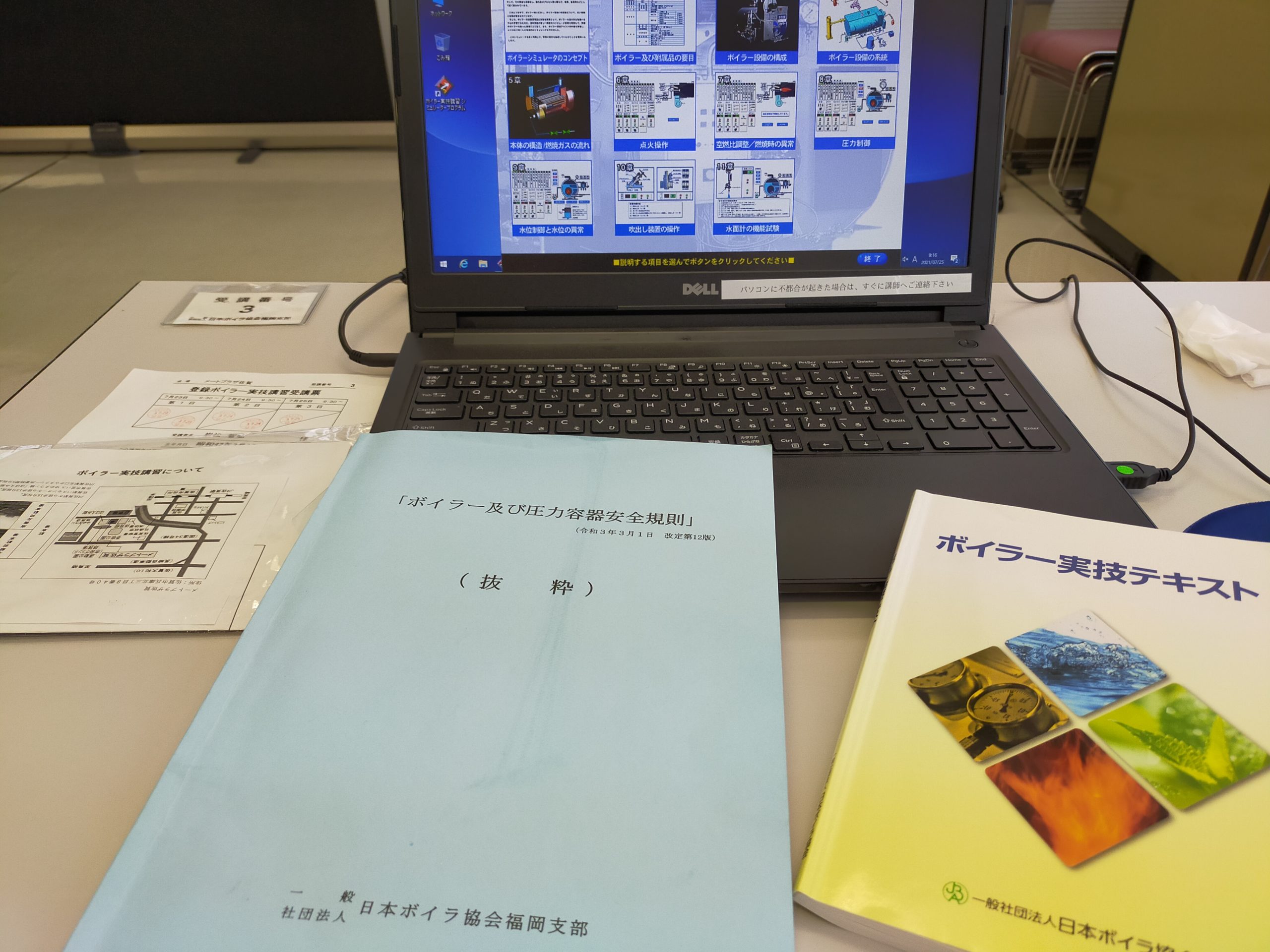 免許証の交付には、実技経験が必要とのこと。ボイラー協会主催の登録ボイラー実技講習を受けます。まるっと三日間。